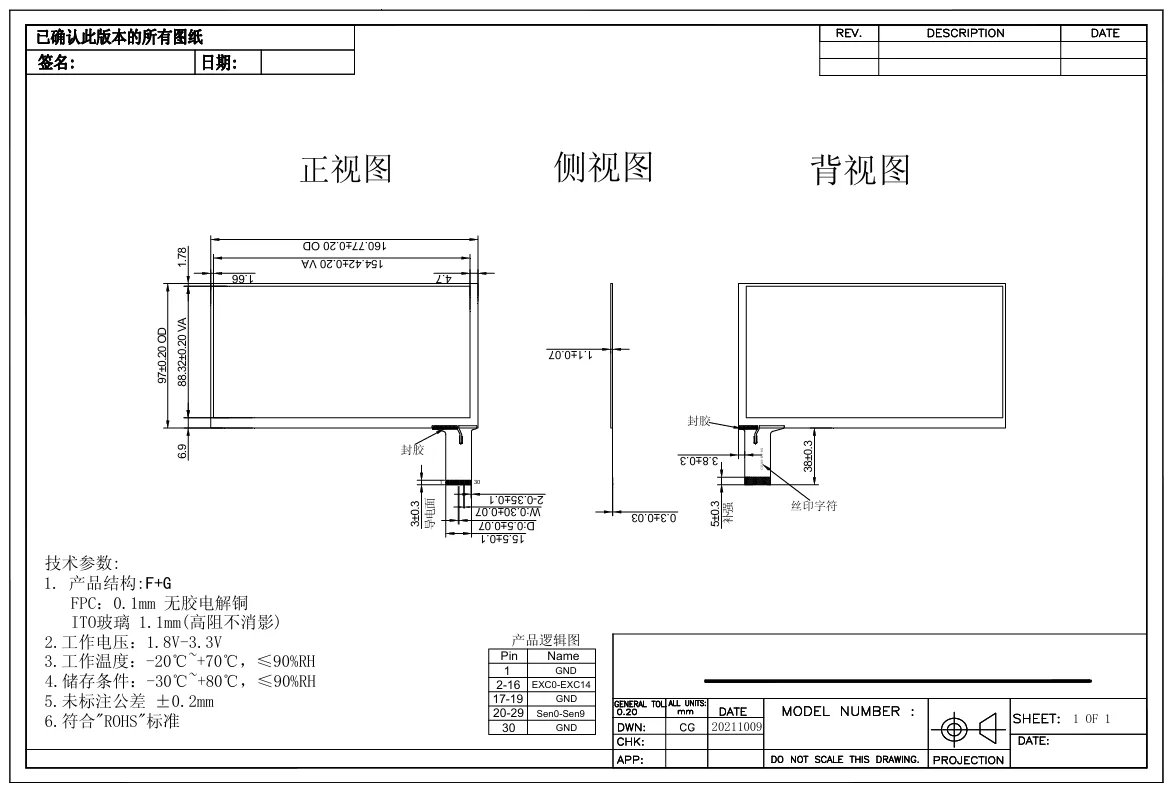 97.00 × 160.77 × 1.10 มม. (โครงร่างเซนเซอร์ พิกัดความเผื่อ: ±0.20 มม.)